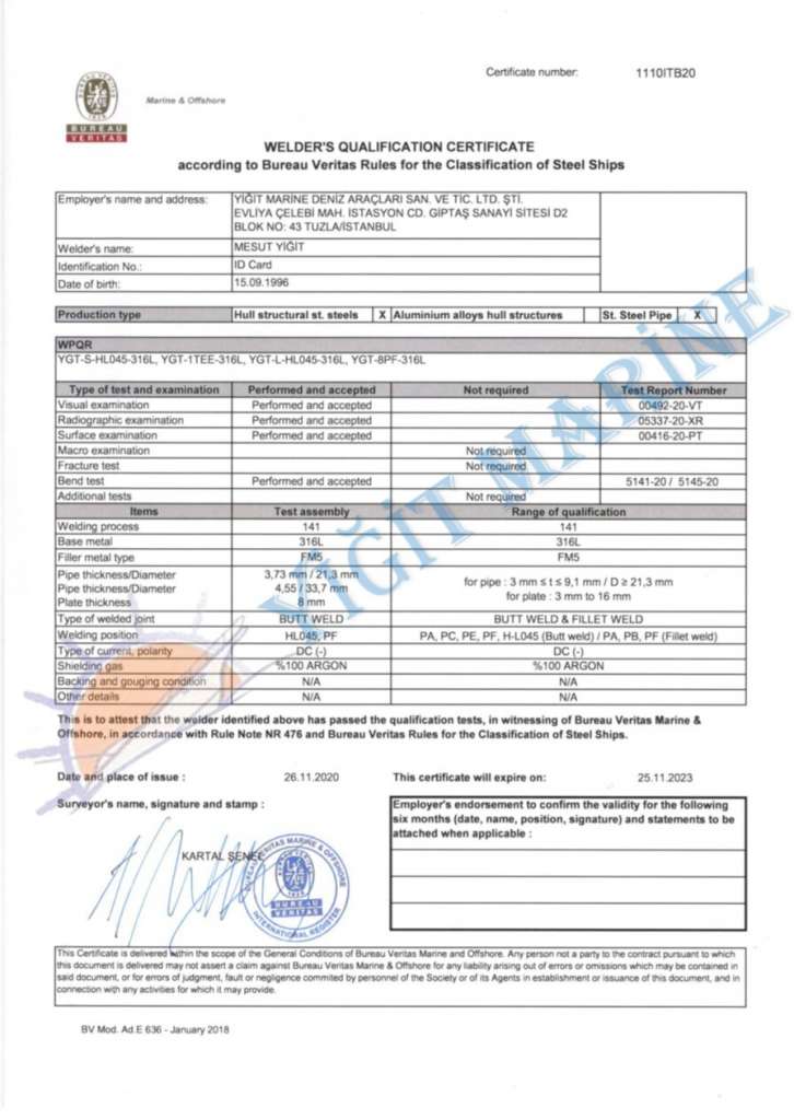 SertifikalarWPQRYGT-1TEE-316L Sertifikası WPQRYGT-L-HL045-316L Sertifikası WPQRYGT-SHL045-316L Sertifikası WPQRYGT-8PF-316L Sertifikası WPQRYGT-WPQR-05 Sertifikası WPQRYGT-WPQR-06 Sertifikası WPQRYGT-WPQR-07 Sertifikası WPQRYGT-WPQR-08 Sertifikası WPQRYGT-WPQR-09 Sertifikası WPQRYGT-WPQR-10 Sertifikası WPQRYGT-WPQR-11 Sertifikası WPQRYGT-WPQR-12 Sertifikası Kaynakçı Sertifikası GEBERIT Uygulama Sertifikası Vakum Sistemleri ve Haman Arıtma Sistemleri Seltifikası GIRPI Sertifikası PE ve PPR Sertifikası Şaft Tamiri ve Yüzey Hazırlığı Sertifikası